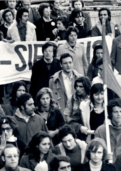 Roberto Franceschi (con il montgomery chiaro) a una manifestazione a Parigi