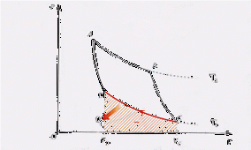 ed è facile rendersi conto che questo prodotto rappresenta proprio l’area tratteggiata in figura III. Si deve osservare che, in pratica, quando abbiamo una trasformazione non chiusa, il lavoro è sempre l’area sottesa tra la curva che rappresenta la trasformazione, i segmenti di perpendicolare all’asse delle ascisse e lo stesso asse delle ascisse. Quando si ha una trasformazione ciclica, accade che, andando da un dato A ad un dato B (ad esempio aumentando il volume), per tornare da B ad A è necessario passare per una qualche trasformazione che riduca tale volume con la conseguenza di sottrarre l’area sottesa da questa ultima trasformazione di ritorno da quella precedente. Riferendoci allora a figura IV si ha che il lavoro L fatto nel ciclo disegnato è dato da: