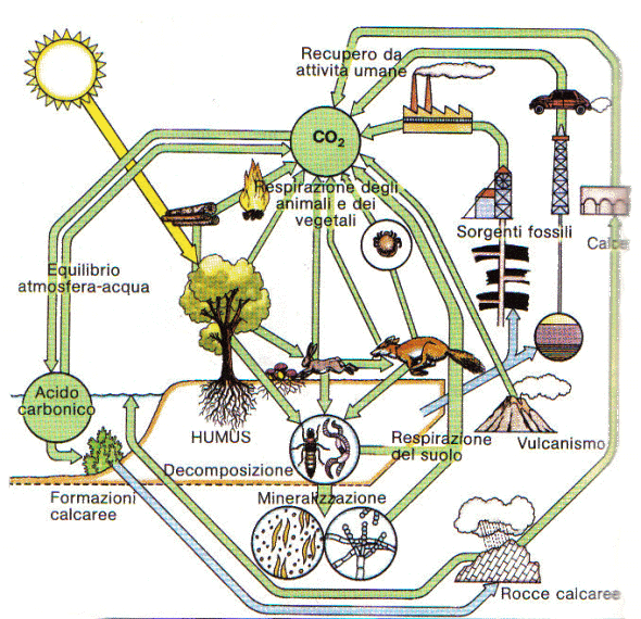 In definitiva si può dire che il ciclo naturale della Terra prevede che, da svariati processi, si generi anidride carbonica e che svariati altri processi l’assorbano in modo tale da