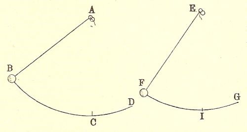 Ora, considerisi il moto che fa il grave B, discendendo in E, e quello che fa, l’altro A, ascendendo in D; e troveremo senza alcun dubbio, tanto esser maggiore lo spazio BE dello spazio AD, quanto la distanza BC è maggiore della C A; formandosi nel centro C due angoli, DCA ed E GB, eguali per essere alla cima, e, per conseguenza, due circonferenze, BE, AD, simili, e aventi tra di sé F istessa proporzione delli semidiametri B C, C A, dai quali vengono 10 descritte. Viene adunque ad essere la velocità del moto del grave B, discendente, tanto superiore alla velocità dell’altro mobile A, ascendente, quanto la gravita di questo eccede la gravita di quello; né potendo essere alzato il peso A in D, benché lentamente, se l’altro grave B non si muove in E velocemente, non sarà maraviglia, né alieno dalla costituzione naturale, che la velocità del moto del grave B compensi la maggior resistenza del peso A, mentre egli in D pigramente si muove e l’altro in E velocemente descende. E così, ali’ incontro, posto il grave A nel punto D e l’altro nel punto E, non sarà fuor di ragione che quello possa, calando tardamente in A, alzare velocemente l’altro in B, ristorando, con la sua gravita, quello che per la tardità del moto viene a perdere. E da questo discorso possiamo venire in cognizione, come la velocità del moto sia potente ad accrescere momento nel mobile, secondo quella medesima proporzione con la quale essa velocità di moto viene augumentata.