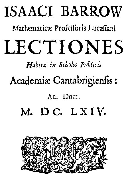 (22) Newton tenne lezioni a Cambridge dal 1669 al 1687. Le lezioni furono raccolte dall’Università in 4 volumi e pubblicate postume nel 1729. Il primo di questi volumi raccoglie le lezioni dal 1669 al 1672 che sono di ottica, il secondo raccoglie le lezioni tra il 1673 ed il 1683 di aritmetica ed algebra, il terzo le lezioni del 1984 e 1985 sul movimento dei corpi, il quarto le lezioni del 1687 sul sistema del mondo.