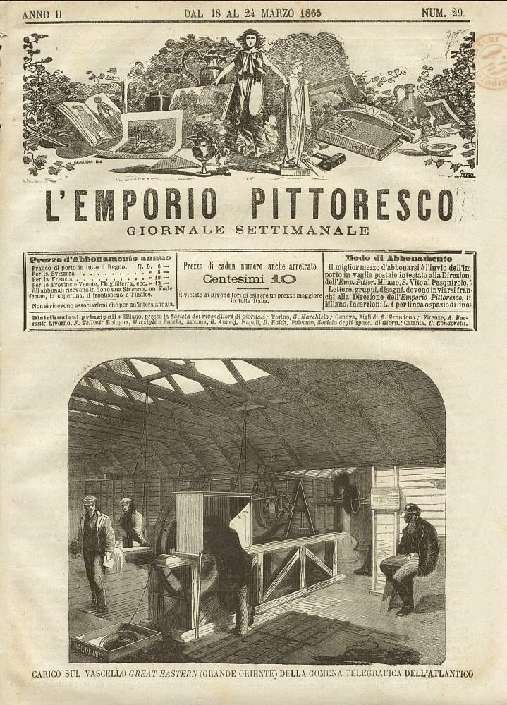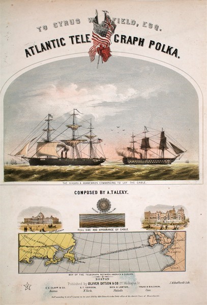 Il libretto di una polka, tra le tante, composta in occosaione della posa del cavo transatlantico. Nel disegno è riportata la HMS Agamennon e la USS Niagara ed il tracciato lungo il quale depositare il cavo.