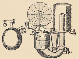 Fra i primi a pensare macchine che sfruttassero il vapore occorre citare Girolamo Cardano che nel suo De Rerum Natura (1557) osservò la produzione del vuoto per condensazione del vapore. Quindi Gian Battista della Porta che nei suoi Libri de’ Spiritali (1601) progettò una macchina che usava il principio di Cardano per sollevare dell’acqua (Fig. 8). Perché questa sequenza fosse completa occorreva la fondamentale