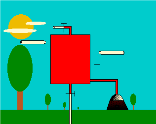 principio seguente. Il vapore proveniente da una caldaia (edificio in muratura di figura) era inviato, mediante un tubo, dentro un recipiente ellissoidale pieno d’acqua con l’effetto di espellere quest’acqua verso l’alto, mediante un altro tubo. Successivamente il recipiente veniva raffreddato mediante un getto d’acqua dall’esterno. A seguito di ciò il vapore ivi presente (che aveva sostituito l’acqua precedentemente presente) condensava provocando il vuoto. In tal modo, la pressione atmosferica agente sull’acqua da sollevare in fondo al pozzo, poteva spingere quest’acqua nel recipiente vuoto (si può anche dire che il vuoto del recipiente aspirava l’acqua dal pozzo). A questo punto un nuovo getto di vapore proveniente dalla caldaia faceva defluire l’acqua verso l’alto. I recipienti ellissoidi presenti erano due ed erano alternativamente riempiti e svuotati per maggiore efficienza dell’impianto. E’ chiaro che per realizzare tutto questo occorreva aprire e chiudere alternativamente rubinetti e valvole; tali operazioni venivano fatte manualmente. La macchina aveva il limite di sollevare l’acqua non oltre i circa 10 metri (limite torricelliano). Per risolvere tale problema Savery spinse sulla pressione, portandola alle circa 10 atmosfere (se si pensa che non vi erano valvole di sicurezza ci si rende conto che tali macchine erano delle potenziali bombe); la qual cosa, nelle previsioni teoriche, avrebbe moltiplicato per 10 il normale sollevamento ad una sola atmosfera, portandolo a circa 100 metri. Il tutto però avveniva con grande consumo di combustibile (carbone e legna), circa 20 volte quello di una normale macchina a vapore di alcuni anni dopo. Ultima notazione è relativa al fatto che tale macchina non metteva in moto altri meccanismi, funzionava in modo statico. Nella figura 14 bis vi è un’animazione della macchina di Savery.