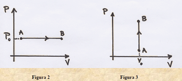 Una trasformazione è isocora, quando si realizza a volume costante. Si passa quindi da uno stato di equilibrio A ad uno B, facendo variare pressione e/o temperatura ma mantenendo costante il volume. In un piano P,V tale trasformazione si rappresenta con una retta parallela all’asse della pressione (Fig. 3), essendo la sua una semplice funzione V = V0 = costante.