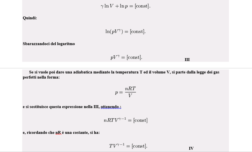 Applicando la precedente relazione all’espansione adiabatica che ci ha portato da B a C e alla compressione adiabatica che ci ha portato da D a B si ha rispettivamente:
