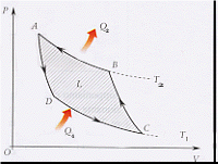 (5) Questo ciclicamente vuol dire che ci si confronta, pur in un discorso teorico, con la realtà. Per pura speculazione si può pensare ad una macchina costituita da un cilindro infinito ed un pistone. Se si immette un gas nel cilindro e si scalda indefinitamente, il pistone si muoverà per la dilatazione continua del gas. Se si continua a scaldare non vi è chi fermi il pistone. Poiché il volume del gas racchiuso nel cilindro cresce sempre si avrà un lavoro sempre positivo. Quindi non vi è necessità di ciclico e neppure di due sorgenti (come vedremo). Il fatto è che le macchine non possono essere infinite. E se sono finite, ad un elevarsi del pistone deve poi corrispondere un abbassarsi del medesimo percorrendo la via a ritroso. Ma, così facendo occorre fare un lavoro negativo e quindi serve una seconda sorgente ed in definitiva una trasformazione ciclica.