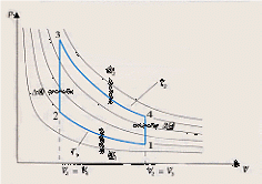 Una trasformazione è adiabatica, quando si realizza in un sistema che non scambi calore con l’ambiente esterno. Si passa quindi da uno stato di equilibrio A ad uno B, facendo variare pressione e/o volume e/o temperatura ma mantenendo l’isolamento totale con l’ambiente esterno. In un piano P,V tale trasformazione si rappresenta con una curva un poco più complessa di una iperbole equilatera (Fig. 5), avendo per equazione la funzione P.Vg = costante (dove l’esponente g è il rapporto cp/cv tra i calori specifici a pressione costante ed a volume costante del gas che subisce la trasformazione; tale quantità vale circa 2)(0). Osservando che l’entropia è definita come DS = DQ/T, essendo invece l’adiabatica una trasformazione a DQ = 0, per l’entropia, in una adiabatica, risulta: DS = 0. Ciò vuol dire che non vi sono variazioni di entropia e quindi che l’entropia dello stato finale coincide con quella dello stato iniziale del sistema. Ciò fa chiamare le trasformazioni adiabatiche anche isoentropiche. Osservo a margine che proprio questa ultima proprietà di queste trasformazioni, fa capire che esse sono trasformazioni ideali, non esistenti in natura, ma utili come limite superiore alla realizzazione di una certa trasformazione.
