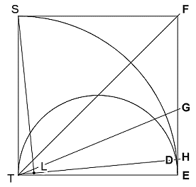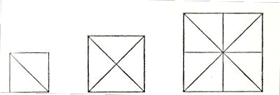 Combinazione di due, quattro o otto triangoli rettangoli isosceli per formare quadrati di tre diverse dimensioni corrispondenti ai tre gradi della terra.