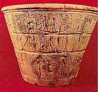 Clessidra ad acqua egizia del XV – XIV secolo a.C. trovata a Karnak. Museo del Cairo. Si tratta del vaso inferiore che, ha vari segni che indicano il livello dell’acqua.