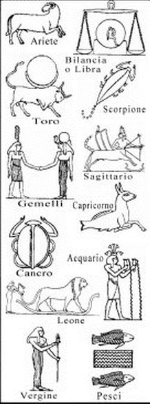 I simboli delle costellazioni che compaiono nello Zodiaco di Dendera