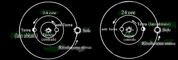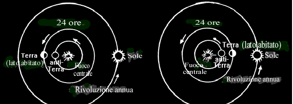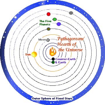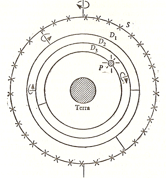 Infine la numerologia della scala musicale fornisce materiali per concepire due grandi moti circolari nell’universo: il primo, che produce la rotazione diurna della sfera delle stelle fisse attorno al proprio asse; il secondo, che produce il moto proprio dei pianeti diretti in verso opposto lungo l’eclittica o parallelamente ad essa. La materia primordiale viene