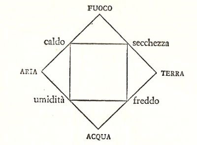 Ci si potrebbero a questo punto chiedere le ragioni di ciò: esse risiedono tutte in principi armonici e legati a quei postulati non dimostrabili che sono alla base di molte filosofie antiche (che arrivano allegramente fino a noi). Intanto si ha a che fare con poliedri perché il mondo è tridimensionale, e un mondo siffatto è rappresentabile da una grandezza elevata al cubo. Supposto poi che la terra sia rappresentabile da un a³ e il fuoco da un b³, il fatto che servano altri due elementi (l’acqua e l’aria) è giustificato con il riconoscimento dell’esistenza di due medi proporzionali tra a³ e b³, che possono dare origine a una progressione geometrica: a³, a²b, ab², b³.