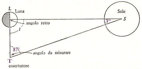 Un compasso. Una delle sue aste si punta verso la stella mentre l’altra si mantiene su di un piano orizzontale. Si individua così, nell’arco graduato, l’angolo sotto il quale si individua la data stella.