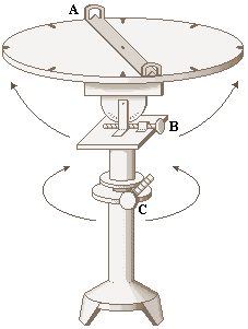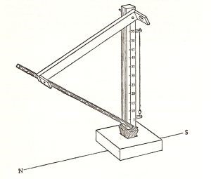 oggetto ed in particolare una stella in cielo. Legando insieme, in modo articolato, due alidade ad un estremo si dispone di un compasso. Con tale strumento, a cui si può connettere un cerchio graduato, è possibile risalire all’angolo tra due direzioni (ad esempio tra quella del piano del punto d’osservazione e quella a cui si trova una stella), in tal caso si ha un compasso.