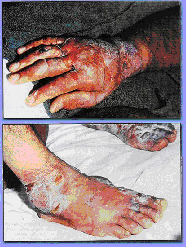 Lewisite. Altro derivato dai gas nervini, attacca insinuandosi nei polmoni o attraverso l’assorbimento della cute. La lewisite ha effetti vescicanti a causa dell’inibizione dell’ossidazione dell’acido piruvico. Si diffonde attraverso la pelle più rapidamente dell’iprite, e i sintomi appaiono subito.La guarigione però avviene più rapidamente e ci sono meno rischi di infezioni secondarie. Sintomi: L’esposizione cutanea a 0.2 mg cm-2 causa la formazione di vesciche e l’ LC50 è di 1.200-1.500 mg min m3 per inalazione o 100.000 mg min m3 per esposizione cutanea. I prodotti immediati dell’idrolisi della lewisite, ClCH=CHAs(OH)2 e ClCH=CHAs=O sono altrettanto vescicanti. E’ molto probabile che i prodotti della lewisite siano responsabili dell’ossidazione dell’acido piruvico in vivo. La lewisite e i suoi prodotti producono vari tipi di arsenico.