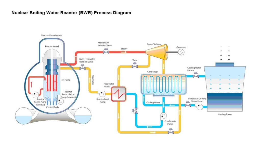 In Fig. 1 è riportato uno schema di funzionamento di un reattore BWR.