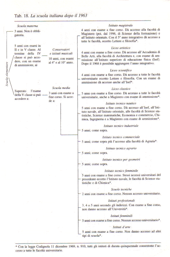 Fonte: Giovanni Genovesi – Storia della scuola in Italia dal Settecento ad oggi – Laterza 2000.