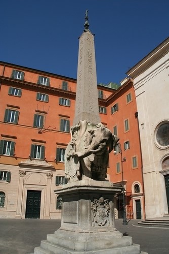L’ingresso del Convento domenicano annesso alla Chiesa di Santa Maria sopra Minerva (che si intravede appena sulla destra). In primo piano il Pulcin della Minerva, una statua su disegno di Bernini (un elefante che sostiene un obelisco e volge il posteriore al convento). Qualche tempo dopo la condanna di Galileo sotto la coda dell’elefantino fu appeso uno scritto che diceva Fratres Dominici, hic ego vos habeo.