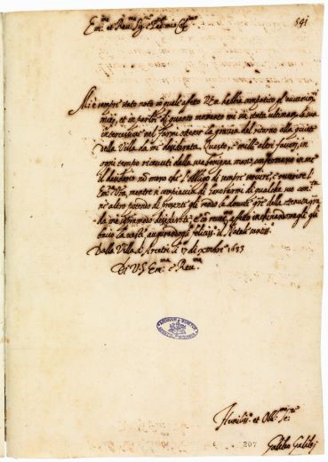 … Haviamo in Siena appresso Monsig.r Arcivescovo il Ga1ileo, che è tornato di Roma per certo suo negotio e si tratterrà qualche giorno.