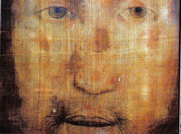 Il vaticanista tedesco del Die Welt, Paul Badde, avrebbe “ritrovato” la reliquia in un ostensorio sull’altare presso la Chiesa dei Cappuccini di Manoppello (Pescara), in Abruzzo dove sarebbe finita in modo misterioso (anche qui, senza misteri non si va avanti). Si trova tra due vetri un tessuto delicato, bianco, quasi trasparente, un velo sul quale solo dopo un’attenta osservazione, si individua un volto con una certa plasticità, il cui colore va dal marrone, al grigio, al roseo delle labbra. Fornisco quell’immagine:
