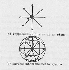 Sappiamo già che una carica elettrica ferma ha intorno a sé un campo elettrico E radiale (le linee di forza possono essere interpretate come i prolungamenti dei raggi della sferetta che ci rappresenta la carica):