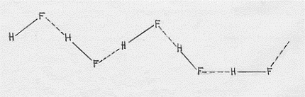 Delle cose analoghe si possono dire per i gruppi (HF)n , con n=l, 2, …, 6; per questi infatti si hanno delle formule di struttura del tipo riportato in figura: