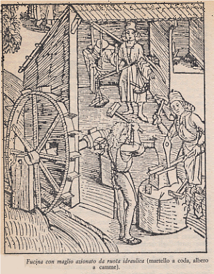 idraulica, le fucine alimentate a mantici idraulici (con ciò si inizia a produrre ferro a buon mercato insieme ad alcune sue leghe come la ghisa). Vengono realizzati