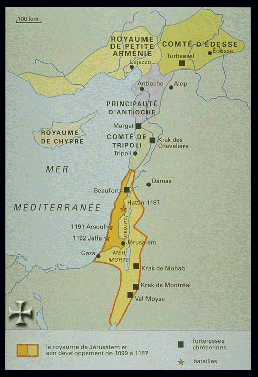 Una esaltazione di questi soldati di Cristo verrà, come no !, da San Bernardo di Chiaravalle che scriverà in loro onore il suo De laude novae militiae. I loro fini erano così clamorosamente comprensibili (la difesa del Sepolcro e del Tempio di Salomone !) che ricevettero donazioni gigantesche e l’adesione di molti nobili europei. E, proprio nel 1129, i Templari parteciparono autonomamente alla loro prima battaglia. mentre nel 1139 passarono alla diretta autorità papale. Questi autorevolissimi riconoscimenti fecero assegnare sia ai Templari che agli Ospedalieri una catena di castelli fortificati che servivano per controllare gran parte delle vie più trafficate del regno di Gerusalemme: nel 1136 il Castello di Bethgibelin, nel 1142 il Castello del Krak des Chevaliers e, dopo il 1149, il Castello di Casal des Plains, di Toron des Chevaliers, di Chastel Arnoul, di Montréal e così via (i castelli erano tra loro collegati visivamente e con piccioni viaggiatori). Insomma questi Ordini assumevano pian piano il ruolo di esercito permanente del Regno di Gerusalemme e proprio le donazioni di castelli e terre mostravano che erano generalmente apprezzati. Occorre però dire che questo esercito permanente era assolutamente insufficiente a garantire la difesa di quel Regno. Da quando si era sciolto l’insieme degli eserciti della Prima Crociata nessun esercito riuscì mai ad essere sufficiente.