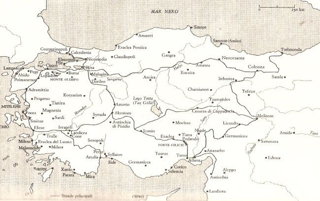 Nella carta è riportato il tragitto delle Prima Crociata dove si ritrovano molte delle città ora citate.