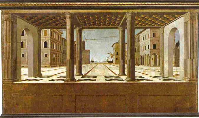 Città ideale, attribuito a Piero della Francesca e alla sua scuola ma anche a Luciano Laurana e Bartolomeo di Giovanni Corradini