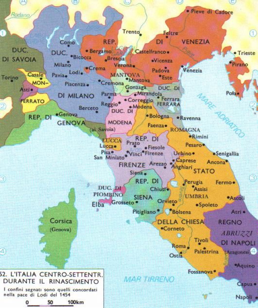 E’ utile avere per riferimento questa carta dello Stato Pontificio per capire meglio la situazione culturale in Italia dal processo a Galileo fino all’Unità.