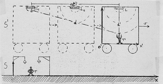 “Il movimento di un sistema qualunque deve ubbidire alle stesse leggi, che si riferiscono a degli assi fissi, o a degli assi mobili trascinati da un movimento rettilineo ed uniforme.” (753)