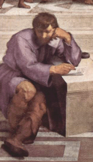 Particolare della Scuola d’Atene di Raffaello in cui Eraclito è raffigurato da Michelangelo