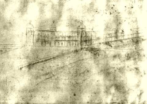 “La Lega di Cambrai, conclusasi nel dicembre 1508 contro Venezia, fra il dinamico Papa Giulio II, il re di Francia e l’imperatore Ferdinando il Cattolico, aveva portato all’invasione del territorio veneto dopo la vittoria di Agnadello (14 giugno 1509). Leonardo, che seguiva in questa campagna Luigi XII, aveva forse contribuito tecnicamente alle operazioni militari pel passaggio dell’Adda. Taluni dei ricordi di lui, ora nella biblioteca del castello di Windsor, lo lasciano supporre.