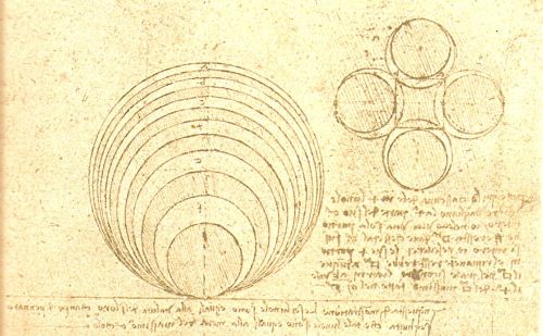 Nel 1496, dopo un lungo soggiorno ad Urbino, arriva a Milano il frate Luca Pacioli. Leonardo strinse subito legami di amicizia con quest’uomo: per lui preparò le tavole incise del De divina proportione. Pacioli aveva studiato Archimede, e conosceva bene anche Euc1ide.