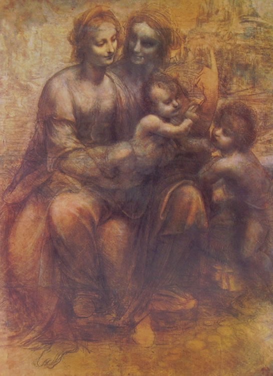 Santa Anna (National Gallery, Londra). Si noti il gioco leonardesco: la gamba sinistra della Madonna (figura a sinistra)potrebbe anche essere la destra della Santa Anna e viceversa.