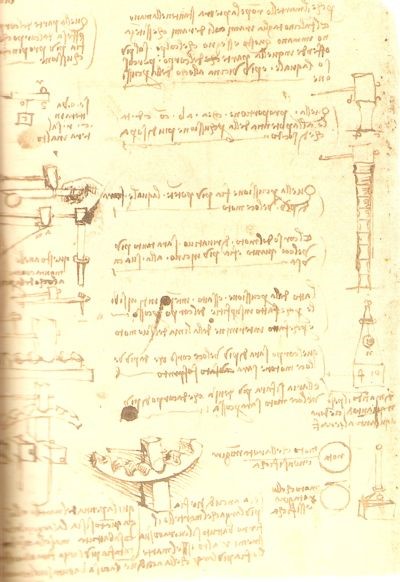 Si verifica allora un fatto singolare: invece di praticare su grande scala una parte qualsiasi dell’arte dell’ingegnere, Leonardo si sforza di completare le conoscenze teoriche che egli ritiene necessarie per raggiungere una sorta di perfezione. Di queste conoscenze egli conserva, per lo meno all’inizio, soltanto quegli elementi che appaiono direttamente e praticamente utilizzabili. Ma, in mancanza di una solida base culturale, le sue conoscenze non si ordinano in un sistema coerente. Di qui derivano quelle incertezze, quelle variazioni nelle soluzioni, e anche quelle confusioni di linguaggio, che si riscontrano quasi in ogni foglio dei suoi quaderni.