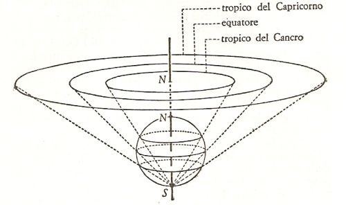 Facendo ruotare la raggera in modo che indichi ad un dato istante la posizione di un punto qualunque del cielo in rapporto al luogo dell’osservazione, si ottiene simultaneamente ed in modo automatico la rappresentazione del mondo in quell’istante e la soluzione grafica di vari problemi astronomici (levata o tramonto di una data stella in pieno giorno, del Sole in quel luogo o in un altro in una qualunque epoca dell’anno, …).
