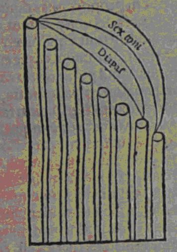 E’ la prima volta da secoli che nell’Occidente cristiano ricompaiono innovazioni e scoperte che riguardano le arti del quadrivio piuttosto che quelle del trivio e, nell’ambito del quadrivio, Gerberto si occupò anche di musica. La figura seguente, tratta da Mensura Fistularum, Gerberto riconduce alle proporzioni pitagoriche il fenomeno della correzione di lunghezza per i tubi sonori degli organi (che si dice costruisse) rispetto al monocordo.