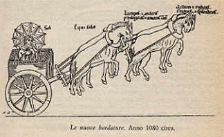 La caduta dell’Impero romano portò allo sfaldamento di quella struttura economica fondata sulla schiavitù(2). Finché la forza lavoro è abbondante e molto economica (ma solo a certe dimensioni) non vi sono stimoli al progresso tecnico ma da un certo punto, con il venir meno nel tempo di questa fonte energetica, le persone dovettero iniziare a lavorare ed anche ad inventarsi lavori precedentemente delegati agli schiavi. Il feudalesimo è proprio la possibile risposta alla fine della schiavitù: ci si richiude in isole territoriali autarchiche che scambiano solo generi di prima necessità di cui non dispongono, come il ferro ed il sale. Mentre nella società romana tra schiavo e imperatore vi era una gran quantità di ceti intermedi, il primo feudalesimo aumentò drasticamente la differenza di classe perché in un feudo si aveva il signore ed il servo della gleba con quasi nessun intermediario. Furono i barbari, operanti in società pressoché prive di distinzione di classe che contribuirono a creare per i servi della gleba condizioni di lavoro più elevate che nell’antichità. L’artigiano riuscì a esercitare le sue capacità inventive in modo ben maggiore rispetto ai suoi predecessori e fu qui che l’uomo riacquistò fiducia nella forza della sua ragione creatrice come accennavo.