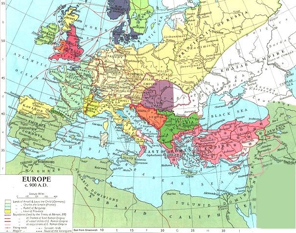 L’editto di Milano del 313 segna il trionfo del Cristianesimo; nel 330 la capitale dell’Impero, diviso amministrativamente, diventa Costantinopoli; nel 391, con Teodosio, il Cristianesimo diventa religione di stato; nello stesso anno il vescovo Teofilo guida fanatici cristiani alla distruzione di parte della Biblioteca di Alessandria; nel 395, alla morte di Teodosio, si scinde l’Impero in Romano d’Oriente e Romano d’Occidente; il 410 vede il sacco di Roma; nel 476 cade definitivamente e simbolicamente l’Impero romano d’Occidente (in realtà già da molti anni non esisteva più); nel 529 Giustiniano chiude d’autorità l’Accademia di Atene e vieta l’insegnamento ai pagani (non cristiani); nel 642 Alessandria viene conquistata dagli arabi e la Biblioteca sarà definitivamente distrutta. Anche la Chiesa subisce le sue dure sconfitte: prima vi è lo scisma dei copti (IV-V secolo); poi nel Concilio di Calcedonia (451, quando Attila entrava in Italia) lo scisma dei nestoriani; quindi con il Sinodo di Costantinopoli (553) se ne va definitivamente la chiesa monofisitica; un evento notevole fu l’incoronazione di Carlo Magno imperatore a Roma (800) dopo che era stato fermato il suo tentativo espansionista verso la Spagna a Roncisvalle (778) ma non verso la Sassonia (780) dove vi furono evangelizzazioni forzate crudeli e disumane che, insieme ad altre cose, gli fruttarono l’eterna riconoscenza della Chiesa; finalmente il grande scisma, quello della chiesa d’Oriente (1054); nello scenario dei grandi rivolgimenti accennati, guerre, invasioni, saccheggi, malattie, si inserisce una profonda crisi dell’agricoltura, la scarsità di manodopera, la grande difficoltà di comunicazione ed una burocrazia ingigantita.