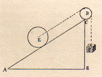 E’ da notare che queste cose Galileo le aveva già sostenute nel De motu, dove si era soffermato a darne delle esemplificazioni. Qui troviamo il principio d’inerzia dato come un assioma, come del resto facciamo oggi. E per Galileo siamo alla premessa della trattazione dei piani inclinati che poi gli serviranno per spiegare il funzionamento della vite. Egli si riferiva alla figura che segue per far capire quali forze sono in gioco in un piano inclinato: