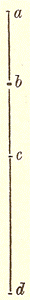 L’uso della lieva di sopra dichiarato poneva in una delle sue estremità il peso, e nell’altra la forza; ed il sostegno veniva collocato in qualche luogo tra le estremità. Ma possiamo servirci della lieva in un altro modo ancora, ponendo, come si vede nella presente figura, il sostegno nella estremità A, la forza nell’ altra estremità C, ed il peso D pendente da qualche punto di mezzo, come si vede nel punto B. Nel qual modo è chiara cosa, che se il peso pendesse da un punto egualmente distante dalli due estremi A, C, come dal punto F. la fatica di sostenerlo saria egualmente divisa tra li due punti A, C, sì che la metà del peso saria sentito dalla forza C, sendo l’altra metà sostenuta dal sostegno A; ma se il grave sarà appeso in altro luogo, come dal B, mostreremo la forza in C esser bastante a sostener il peso posto in B, tutta volta che ad esso abbia quella proporzione, che ha la distanza AB alla distanza AG.