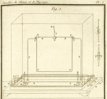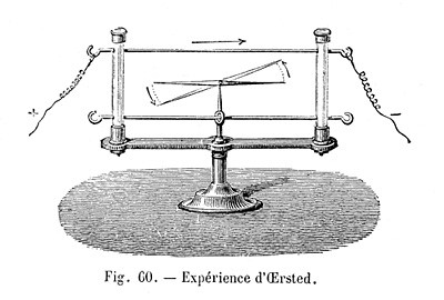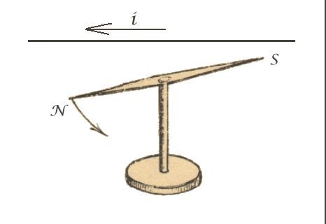 Nel 1820 arrivò un semplice fenomeno che dette moltissimo da discutere e molto da elaborare sia teoricamente che matematicamente: il danese Oersted aveva mostrato che un filo conduttore attraversato da corrente voltaica faceva ruotare un ago magnetico posto nelle vicinanze. La rotazione avveniva su un piano perpendicolare alla congiungente filo-ago.