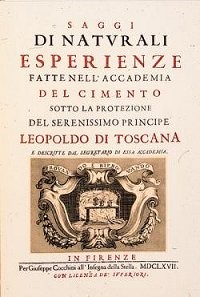 Questa Accademia fu fondata nel giugno 1657 dal Granduca Leopoldo de’ Medici; tenne la sua prima adunanza il 19 giugno di quell’anno. La Società Reale di Londra fu fondata nel 1663, l’Accademia di Francia nel 1666. I componenti l’Accademia del Cimento furono Vincenzo Viviani, Alfonso Borelli, Carlo Rinaldini, Alessandro Marsili, Paolo Del Buono, Antonio Oliva, Lorenzo Magalotti, Francesco Redi, Carlo Dati, i quali erano nomati i soci operatori; i corrispondenti poi furono fra gl’Italiani il Ricci, il Cassini, il Montanari, il Rossetti, il Falconieri; fra gli esteri lo Stenone, il Thevenot ed il Fabbri.