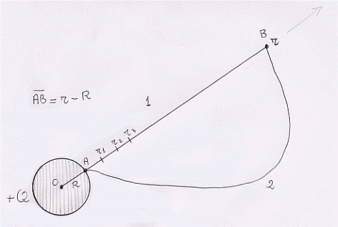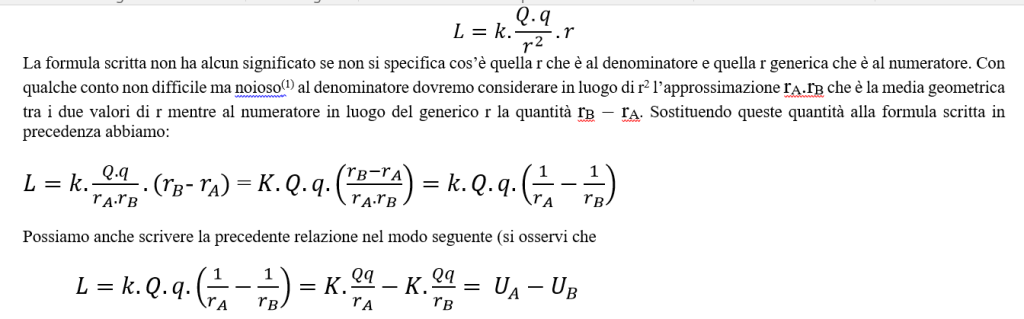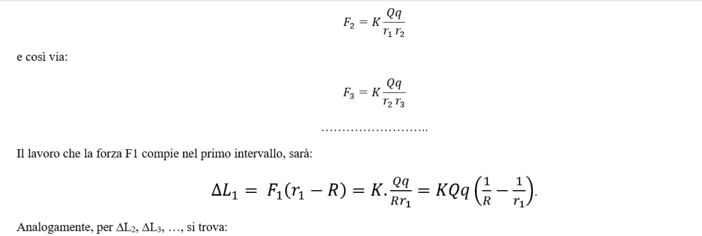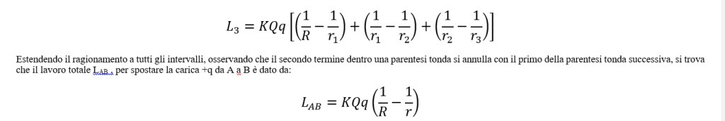 Estendendo il ragionamento a tutti gli intervalli, osservando che il secondo termine dentro una parentesi tonda si annulla con il primo della parentesi tonda successiva, si trova che il lavoro totale LAB , per spostare la carica +q da A a B è dato da:
