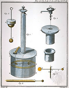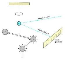 Un filo di seta sospeso ha alla sua estremità una barretta perpendicolare al filo. Ad una estremità della barretta vi è una sferetta carica bilanciata all’altra estremità da un contrappeso. Sul filo di seta è fissato uno specchietto che ruota quando ruota il filo. Un raggio di luce, indirizzato sullo specchietto, si riflette andando su una scala graduata. Quando lo specchietto ruota solidalmente con il filo il raggio riflesso si sposta sulla scala graduata. Se si sistema una carica fissa nelle vicinanze della carica sospesa, supponiamo dello stesso segno, si eserciterà una forza repulsiva che fa ruotare (torcere) il filo, quindi lo specchietto ed in definitiva potremo misurare il tutto dal raggio riflesso sulla scala graduata: l’angolo di torsione è proporzionale alla forza torcente.