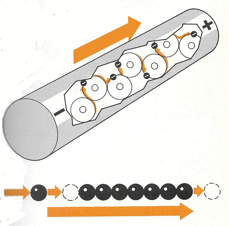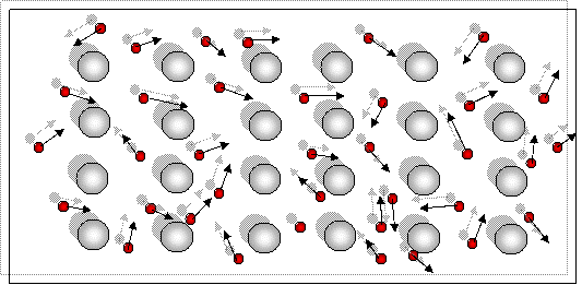 Nella scatola gli elettroni (in assenza di forze esterne) si muoveranno indifferentemente verso destra e verso sinistra cosicché si può pensare che una metà circa si muove verso destra mentre l’altra metà si muove verso sinistra. Il risultato è che non si ha nessuna «corrente» elettrica risultante.