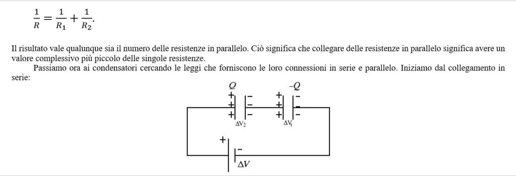 Passiamo ora ai condensatori cercando le leggi che forniscono le loro connessioni in serie e parallelo. Iniziamo dal collegamento in serie: